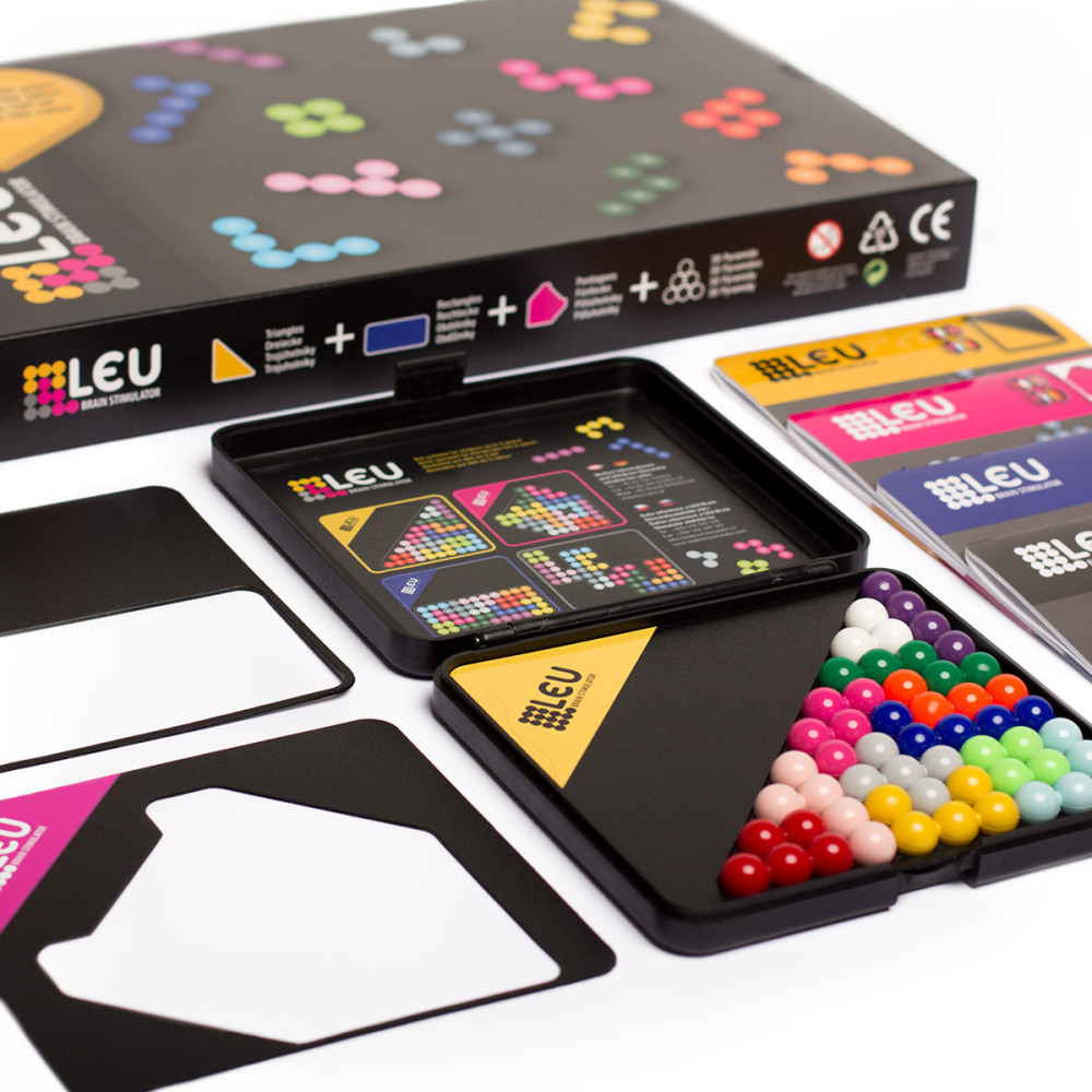 LEU Brain Stimulator je zábavnou a napínavou hrou s velkou pedagogickou hodnotou pro lidi od 4 do 104 let. Celkem 960 různých 2D a 3D úkolů v 10 na sebe navazujících úrovních obtížnosti poskytuje zábavu a stimuluje mozek různými způsoby. Více než neuvěřitelných 404 tisíc možností řešení dělá z LEU Brain Stimulatoru výzvu na celý život, která vás nikdy nepřestane bavit. Pouze LEU Brain Stimulator má 4 vyměnitelné herní plochy pro více zábavy a napětí, ale také pro účinnější trénink mozku.